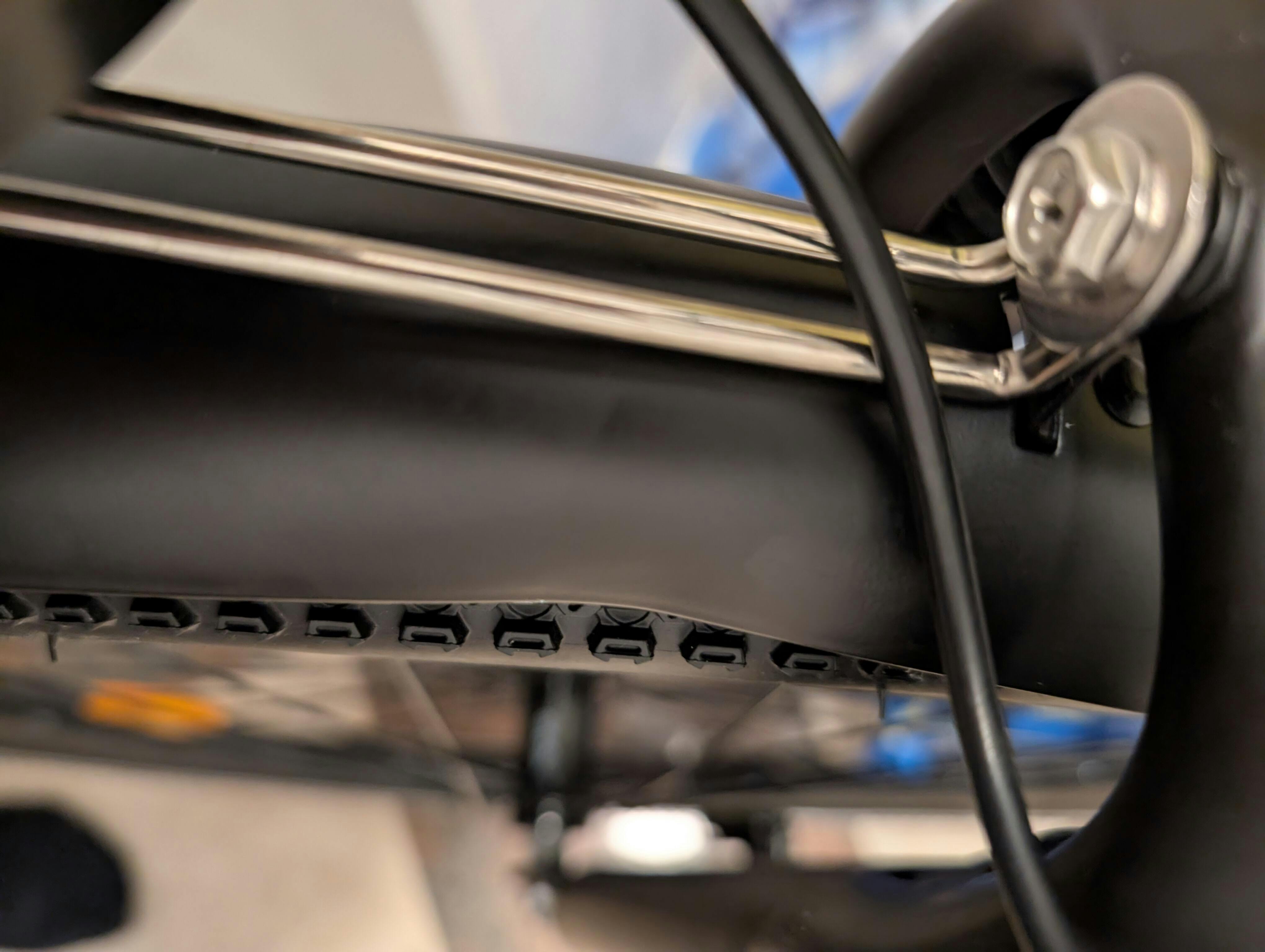 Cityrun features a sleek and simple guard that seamlessly matches the frame's color. Its minimalist design enhances both aesthetics and functionality, providing effective protection while maintaining a stylish look.